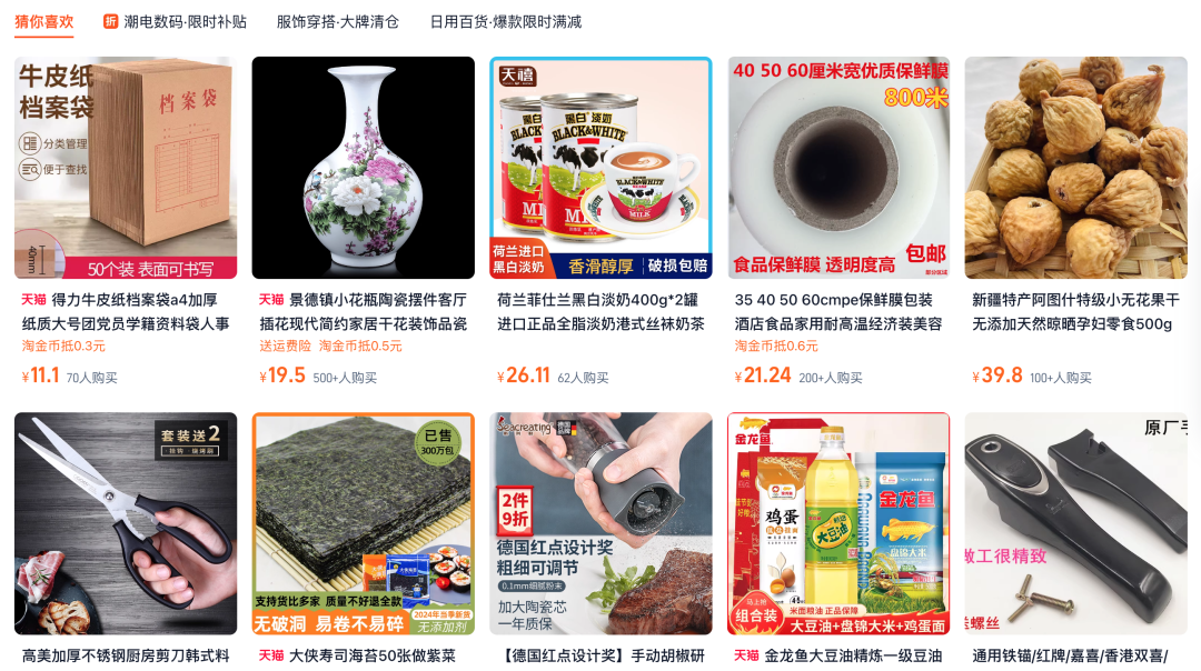 两个网站我都没登录,但淘宝推荐的这个真的很莫名其妙。种类五花八门,图片品质还一般,请问你是凭什么判定我会喜欢这些东西?