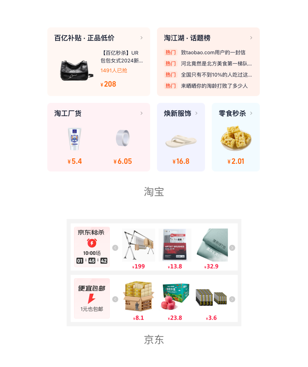 从设计专业的角度来看,我认为淘宝的新版首页比京东更好,因为以下3点: