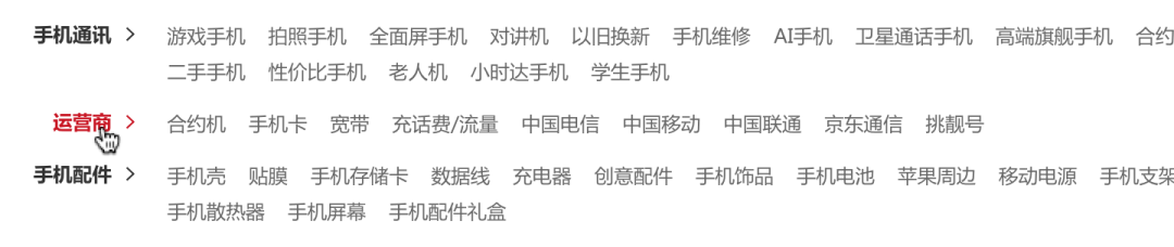 去年的文章里,我着重对比了一下淘宝和京东的导航。这是去年京东的导航,看起来没什么问题: