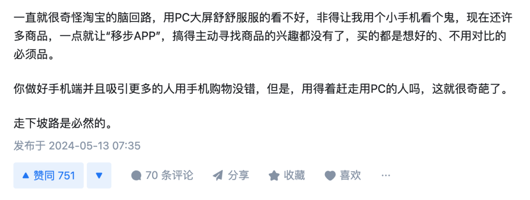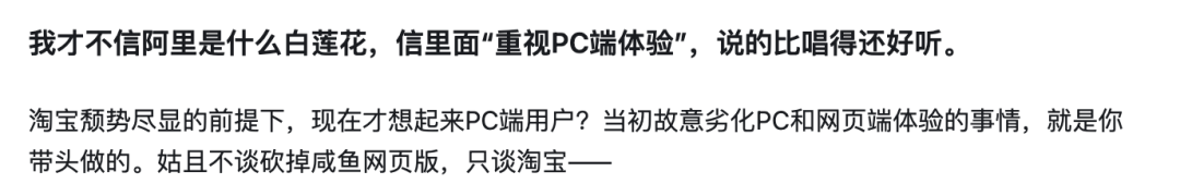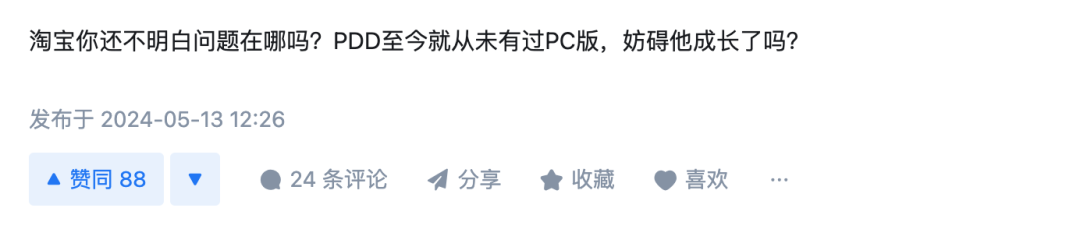 但很多人的帖子的观点在于:“不如用拼多多”、“早干嘛去了,谁叫你瞧不起我们PC端用户”、“想用PC端抬价坑人”……多少带着点主观情绪。