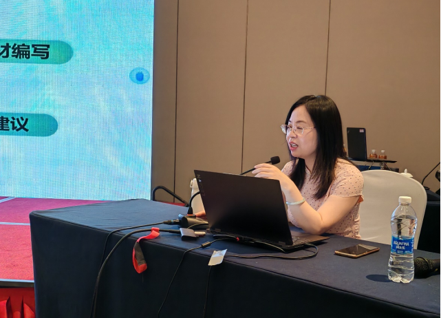 接下来,深圳市宝安中学(集团)初中部高级教师、粤教科学版化学教材核心作者莫璇老师为大家带来了“基于主题单元的化学教材分析及教学策略建议”的报告。莫老师从主题单元的视角介绍了新教材的特色和亮点,通过建构“变化观”“元素观”“物质”“探究物质性质的一般思路和方法”等多个例子详细分析了教材内容的整体性和进阶性,同时,她还结合自身的教学经验提出了具体的教学策略和建议。