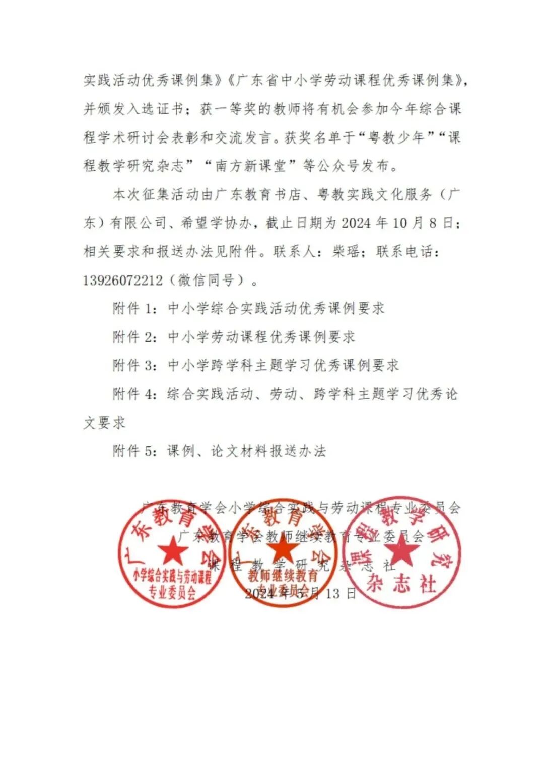 本次征集活动由广东教育书店、粤教实践文化服务(广东)有限公司、希望学协办,截止日期为2024年10月8日;相关要求和报送办法见附件。