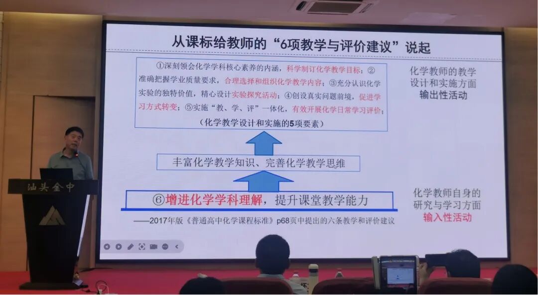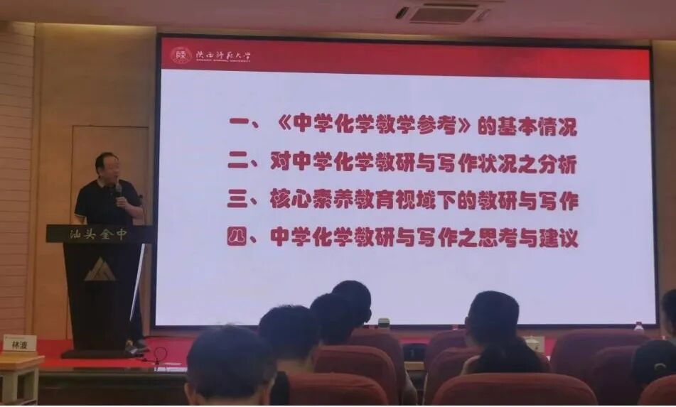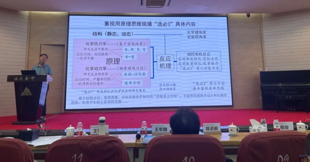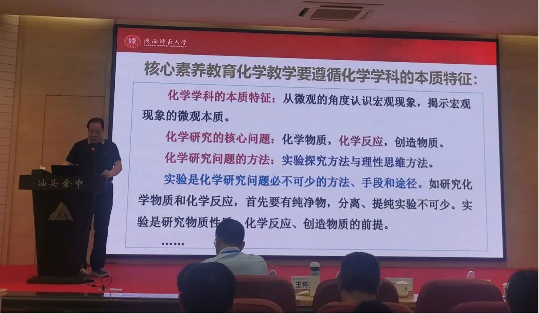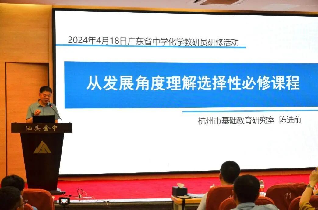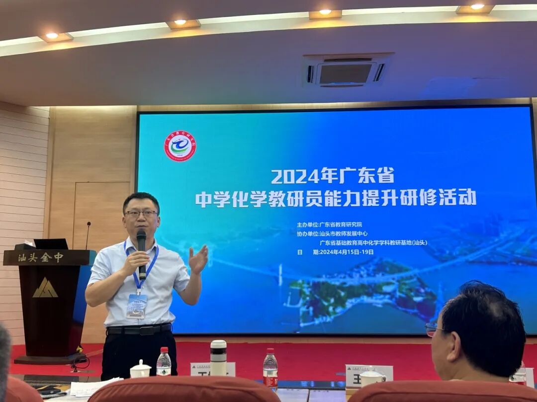 2024年4月18日,广东省中学化学教研员能力提升研修活动在百年名校——汕头市金山中学举行。当天下午,在佛山市教育局教研室副主任王怀文老师的主持下,《中学化学教学参考》主编、陕西师范大学硕士生导师王军翔教授和杭州市基础教育研究室前化学教研员、正高级教师、特级教师陈进前老师给学员们带来了两场精彩纷呈的主题讲座。两场讲座促进了学员们以发展的视角理解化学学科本质,进一步提升学科认识能力,形成学科思想认识体系。