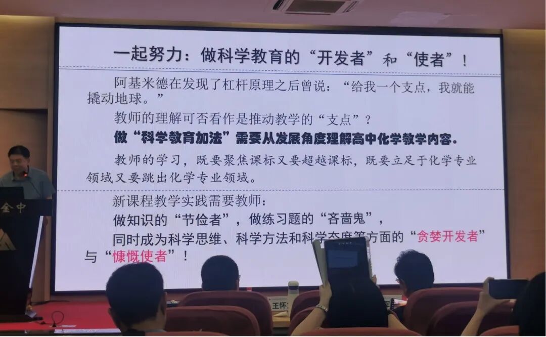 王教授以高于化学学科的哲学视角谈化学学科的思想方法,直击学科本质,令学员们茅塞顿开。他的讲座不仅让老师们对学科教学与教研工作有了更加明确的方向、方法,也拓宽了老师们的教研论文写作思路,进一步明晰了以后教研实践的方向。