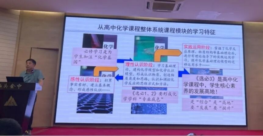 陈进前老师在讲座《从发展角度理解选择性必修课程》中从“增进化学学科理解,提升课堂教学能力”、“从高中化学课程整体系统看课程模块的课程目标和学习特征”和“选择性必修课程的知识体系构建”三个板块来指导学员基于发展的视角理解选择性必修课程。