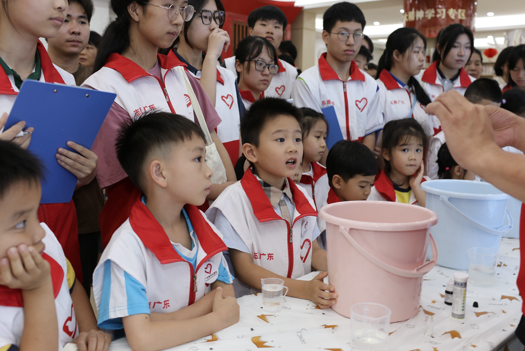 除了课堂环节,活动还设置了测水小实验课堂和河涌观察活动。在海珠区青年志愿者协会海珠区河小青志愿服务队、广州市城市排水有限公司南区运营分公司志愿者的指导下,学生们分别对河涌水、湖水及自来水进行了水质检测,三者进行对比,并沿着晓港公园附近河涌进行观察,学习河长公示牌,实地了解河涌变化,将刚才课堂上学习到的知识与实践相结合。通过观察,学生更直观地了解了水质状况和河涌保护的重要性,增强了环保意识和实践能力。