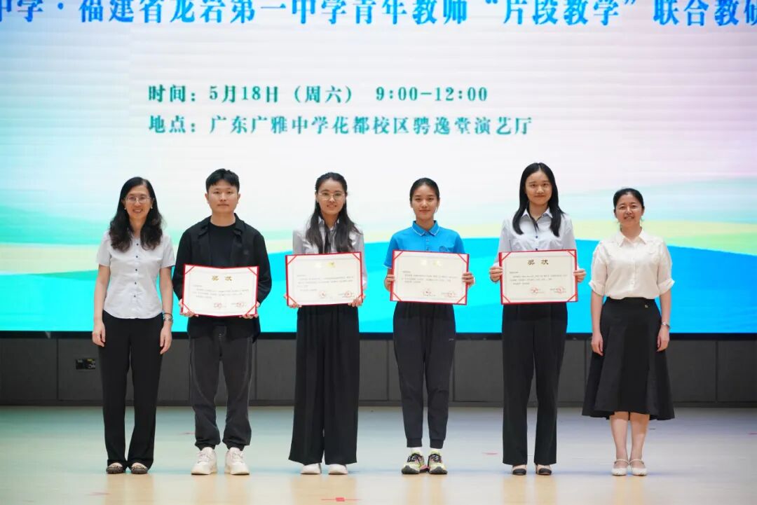 经决赛专家评委组评审,本次广东广雅中学·福建省龙岩第一中学青年教师“片段教学”联合教研(比赛)最终评出特等奖两名、一等奖四名、二等奖七名,大众评委“我最喜爱的课例”一名。