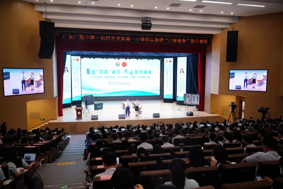 在广州市教育局统一部署下,广东广雅中学与福建省龙岩第一中学建立对口合作的关系。为加强两校合作交流,推进校本教研联动,扎实进行新课程课堂教学模式的研究和应用,促进青年教师专业成长,全面提升两校教育教学质量,5月18日上午,广东广雅中学·福建省龙岩第一中学青年教师“片段教学”联合教研(比赛)活动在广东广雅中学花都校区骋逸堂演艺厅举行。