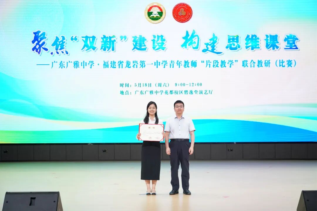 广东广雅中学王穗芳副校长、龙岩一中梁泽君副校长为获奖者颁奖