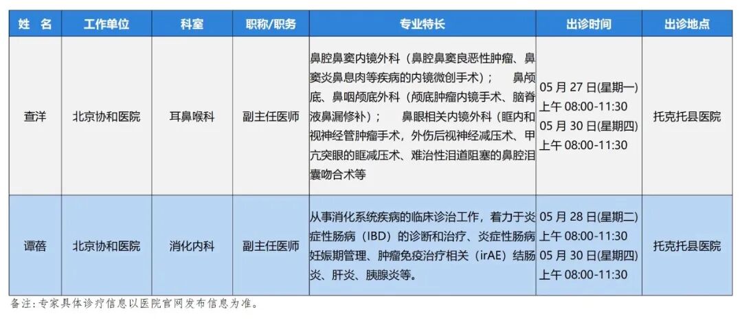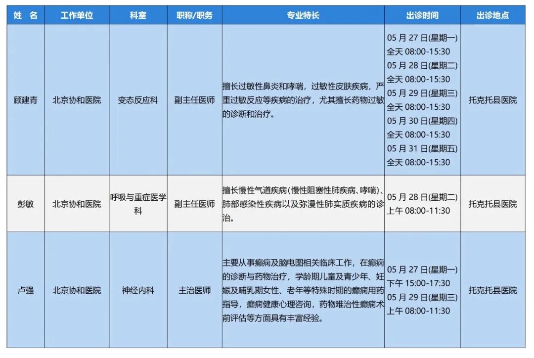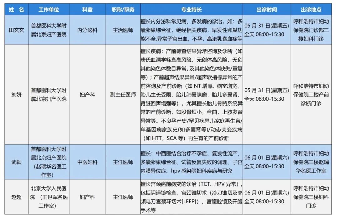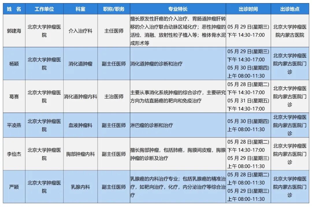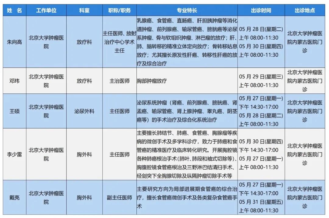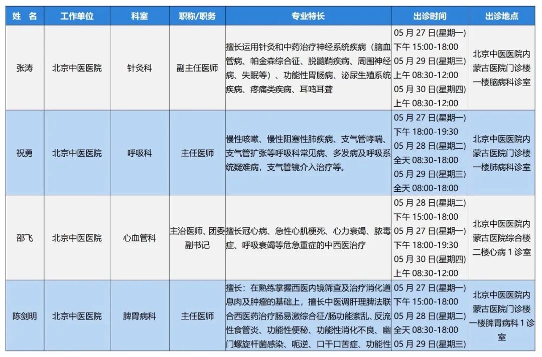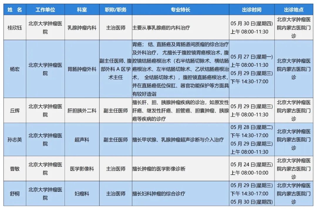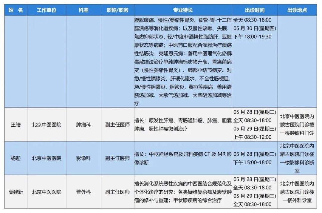 【“京蒙协作”|本周北京协作医院专家出诊安排】