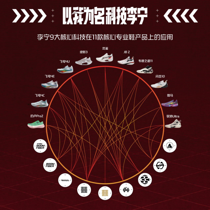 科技对体育竞技的改变,是深刻、深远,且有目共睹的。2022年柏林马拉松,25岁的埃塞俄比亚选手塔杜·阿巴特(Tadu Abate)以2小时06分28秒的成绩夺得第三名,创造了个人在马拉松世界大满贯赛事上的最好成绩和最高名次。马拉松世界大满贯是当今世界马拉松竞技水平最高的六个马拉松赛事,除了柏林,另外五个分别是波士顿、伦敦、芝加哥、纽约、东京举办的马拉松。其中柏林马拉松因为路线平坦、快速,便于出成绩,使得马拉松世界纪录一而再、再而三地在此诞生。在那场巅峰对决中,阿巴特不仅成就了个人,也改写了世界马拉松运动赛场上的运动品牌竞争历史。他脚下穿着的,正是来自中国的李宁的跑鞋。这是中国运动品牌第一次登上马拉松世界六大满贯的领奖台,也是中国跑鞋当时的最快跑马纪录。今年2月份进行的西班牙塞维利亚马拉松上,即将36岁的法国马拉松运动员Amdouni Morhad以2:03:47的成绩打破法国国家纪录(2:05:22),夺得亚军,再次刷新了中国品牌跑鞋马拉松赛场的最快完赛纪录,也将中国跑鞋带入“203时代”。帮助中国运动品牌打破国际巨头对大满贯赛事领奖台垄断,并刷新中国品牌跑鞋跑马成绩纪录的功臣,名字叫李宁飞电3Ultra跑鞋。这是一双蕴藏了顶尖材料科技创新的跑鞋,背后涉及新材料、中底、人体工学、运动生理生化等。2024年,该系列的跑鞋迭代到第4代。应用了专门针对马拉松竞速的双段助推结构科技——最速曲线系统后,飞电4 Ultra给跑者跑步经济性助力较上一代提升了8%,因此其马拉松竞速成绩更充满想象空间。从原始时期的动物皮毛、植物枝叶,到农耕社会的棉麻丝绸,再到工业时代的塑料、合成纤维等等,材料的应用及技术创新的幅度,决定了服装鞋履行业创新与发展的高度,以及消费者穿戴鞋服的最终体验。在运动用品行业,材料科技创新早已成为创新的必修课,是品牌从激烈的市场竞争中突围的破局点。以运动鞋为例,其构造主要分为鞋面、中底和大底。其中,中底最为重要,被誉为运动鞋的“心脏”,是缓震、回弹性能的关键,决定着一双运动鞋60%的性能。如果中底拉胯,运动者运动产生的震动就会源源不断地传导至身体,增加脚踝、膝盖、大腿肌肉等部位的受伤风险。而决定中底性能的关键,就是材料的应用。多年来,国内外运动品牌在材料科技方面创新的脚步从未停歇。从阿迪达斯的Boost,到耐克的Zoom X,不仅是材料科技创新的佼佼者,也是驱动企业增长的动力源。在中国运动品牌中,一提到材料科技创新,当首推李宁。用事实说话,2019年9月,李宁推出䨻科技,及基于䨻科技的第一双国产碳板跑鞋飞电elite,改写了顶级竞速类产品被国际品牌垄断的市场格局。䨻科技的确也不辱使命,其0.11g/cm3的材质密度,让市场上的同等中底科技难以望其项背,而高达 80%的能量回馈,能助跑者在平地环境下节约1.2%以上的耗氧量。在李宁之后,其他国产运动品牌也纷纷加入到碳板跑鞋战场。而文章开头提到的飞电3,是李宁该系列产品的第三代。这只是一个例子,李宁还拥有多个行业领先的头衔,比如:“早在2006年就得到NBA实战检验的中国篮球鞋”“目前唯一集齐世界顶级三大工业设计大奖的中国运动品牌”等。5月29日,李宁公司在其举办的科技大秀上,又发布了三项最新的创新成果:搭载独创全新弜结构的龙雀跑鞋、搭载独创双碳板中空结构的绝影3跑鞋、防暴雨双透纳米科技。另外,李宁还对外透露其在鞋环保科技上取得突破,将推出全降解的专业运动鞋。龙雀是李宁针对前掌跑法的竞速运动员而研发,不仅应用了最新的李宁弜科技,也首次在跑鞋上应用超䨻科技,带来更轻弹的中底支持,单只重量低于89g(8.5码)。而绝影3代搭载轻弹的李宁䨻科技和李宁弜科技,进一步提高材料性能,带给跑者更有力也更省力的跑步体验。相较于2代,绝影3代双层碳板大幅加长,下层碳板表层升级为高分子新材料,碳板韧性增加48%。而李宁弜的中底镂空结构大幅提升,能量储存+96%,回弹性能跃升38%。同时,前后掌加宽,稳定性大幅提升19%,有效使得跑动中关节损伤风险降低。即:绝影3代能够回弹更强、更省力、更稳定的跑步助力。纵观世界运动用品行业历史,材料科技应用与运动科学研究是推动运动装备创新发展的两根支柱。如果放入体育运动语境的话,前者可以类比为爆发力,即对新材料应用与转化的能力。而后者则可以看作是持久力,即建立在对运动需求的理解、洞察,并结合材料科学、物理学、运动人体学、医学等学科,将科技转化为产品的能力。前者是站在新材料这个巨人的肩膀上,借的是材料可信的外力,而后者则是基础学科,比的是运动科研内功及投入,尤其是对运动员(普通人运动时也可以被视为运动员)在运动过程中真实需求的洞察与满足的内功上。毕竟在体育运动中,运动员身经百战,更清楚地知道运动员真正需要什么,以及什么样的产品最能提高运动表现和穿着体验,因此必须永远是运动用品企业最重要的研究对象。而作为一家由世界一流运动员(李宁本人三次夺得奥运会金牌)创立的运动品牌,李宁品牌从一开始就对运动员和运动表现有着更强的洞察力,运动产品研发能力自然也更为突出。有了这样独特的企业底色,李宁品牌的科技创新起步更早,早在1998年,就在佛山成立了产品设计开发中心,成为国内最早创建独立设计开发中心的运动品牌,而当其他国产品牌在