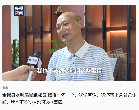 所以也不排除少数人到了年龄之后就滋生了一种“到站下车”的心态,觉得自己马上就要退休了,何必那么较真呢?开开心心不得罪人退休不好吗?但作为基层水利、环保工作者,一旦出现这种心态,就难以守住生态保护这条红线了。