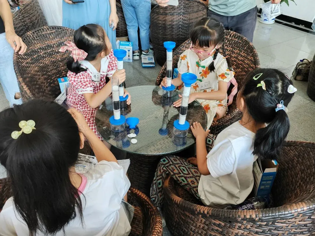 4、11:00—11:25:“水质净化”实验。按照讲解员的示范,孩子们分组完成实验。