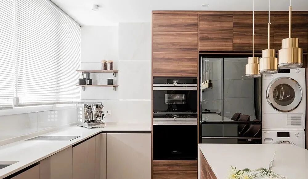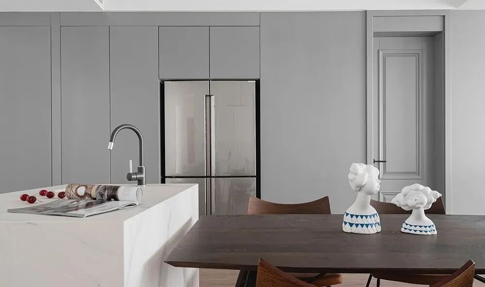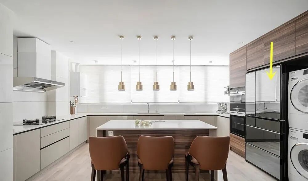 厨房定制或打制橱柜的时候,一定要提前预留好冰箱柜的尺寸,距离水槽和灶台要远一些,防止影响到冰箱正常运转。