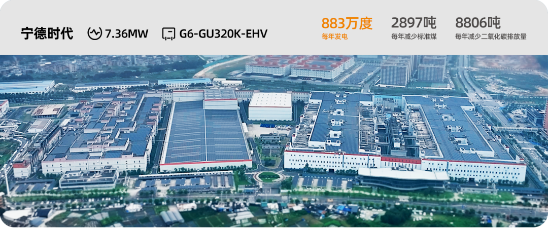 晴空之上,万物向阳,锦浪大功率逆变器迎着明媚的阳光,源源不断地为宁德时代提供重要的绿电供应和保障,年发电量高达883万度。焕然一新的厂房上,阳光与梦想一同扎根、蓬勃生长。