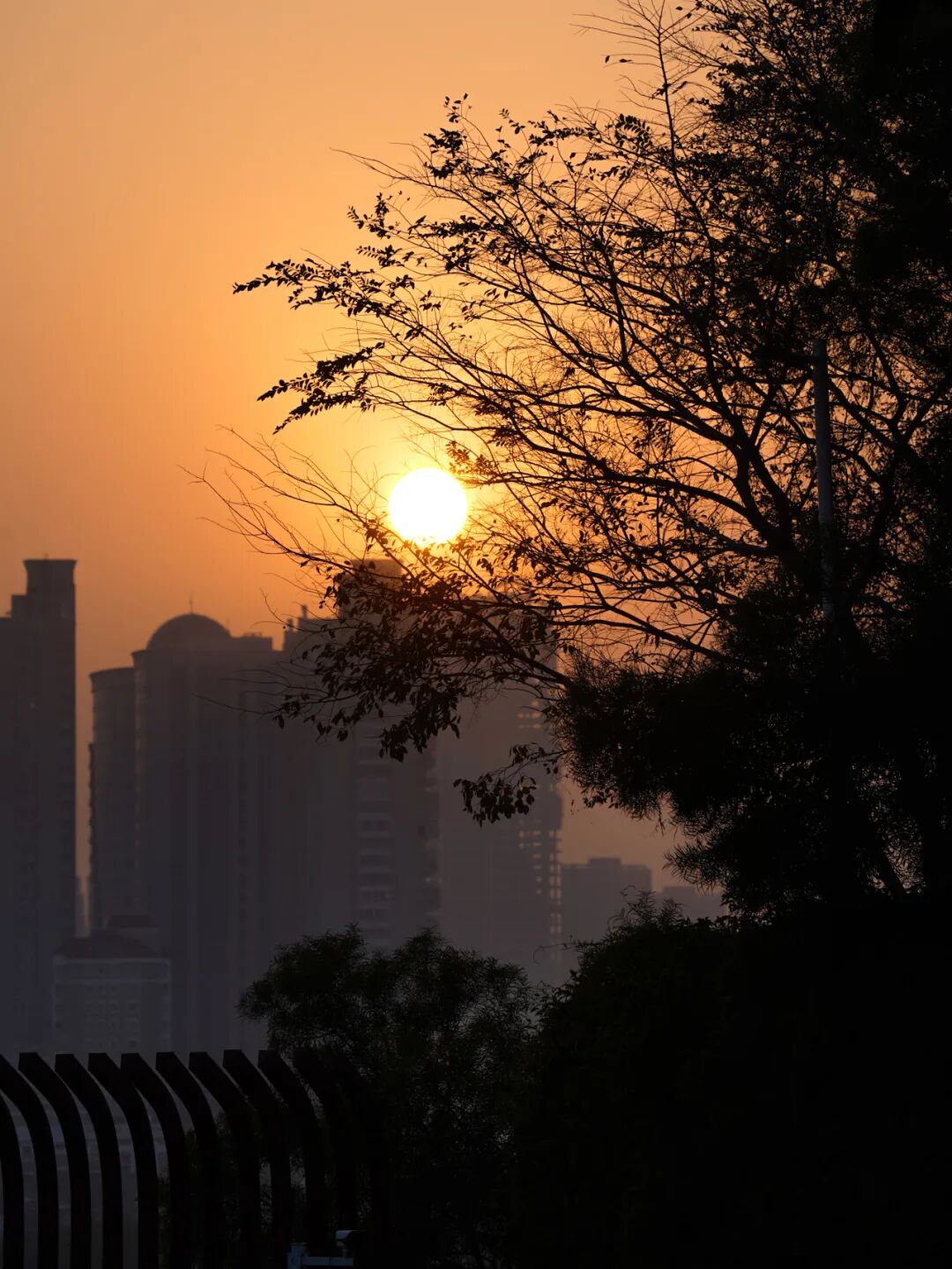 晨曦划破天际,阳光透过枝桠