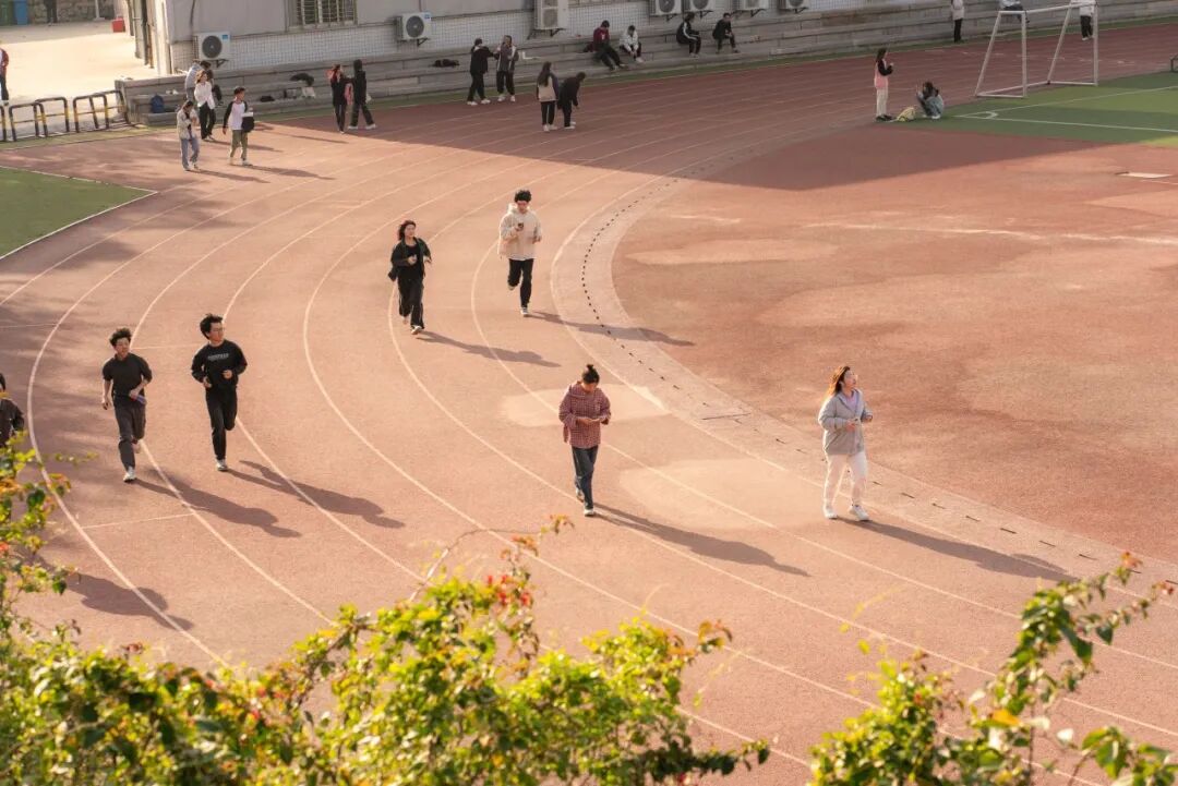 与三两好友,漫步在田径场上