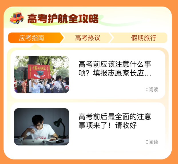 应考指南、高考热议、假期旅行