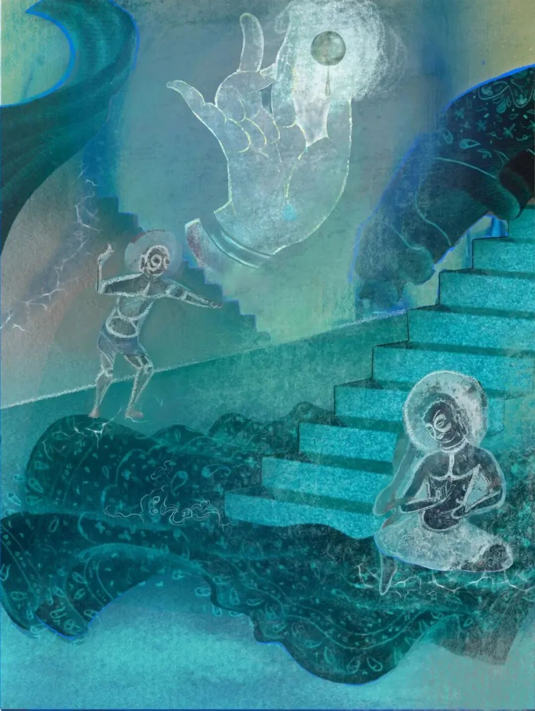 在一片和谐共生的世界,这个世界由佛的智慧和人类的努力共同塑造。我将中国佛教艺术的神秘与超现实主义相结合。这个世界中,佛并非遥不可及的神祇,而是与人类息息相关的存在。他们以各种方式影响着人类的生活,而人类也在不断学习、成长的过程中理解和尊重佛的本生。