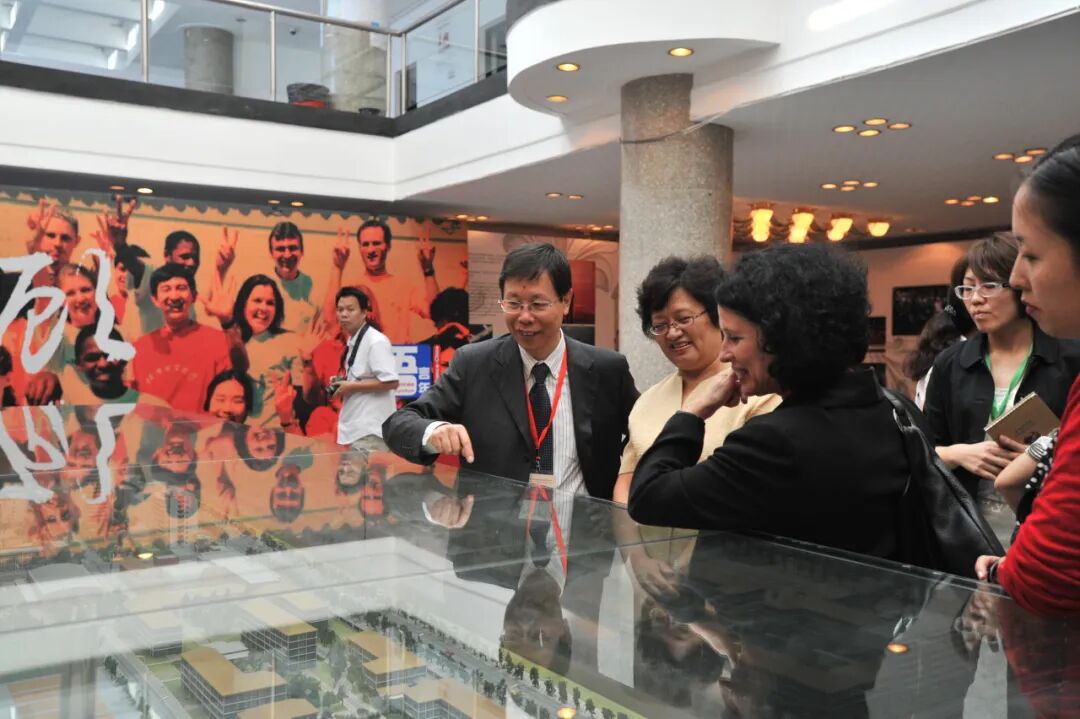 2012年9月,崔希亮校长陪同时任教育部副部长李卫红、法国驻华大使白林参观“中法语言年回顾展”。