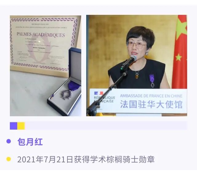 北京语言大学为中法语言文化的交流作出了突出贡献,多位教师长期致力于中法两国教育、文化领域的交流,以及法语在中国的推广教学工作。先后有10位教师获得法国总统或政府颁发的荣誉军团骑士勋章、国家功勋骑士勋章、艺术与文学骑士勋章和学术棕榈骑士勋章。