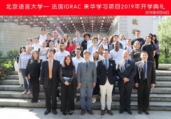 2019年9月,北语与法国IDRAC商学院合作举办的首届商学院“来华学习项目”开学典礼在逸夫报告厅举行。此次商学院与法国IDRAC商学院在专业教学领域开展合作,是学校全面推行“外语+专业”教学特色的重要体现。