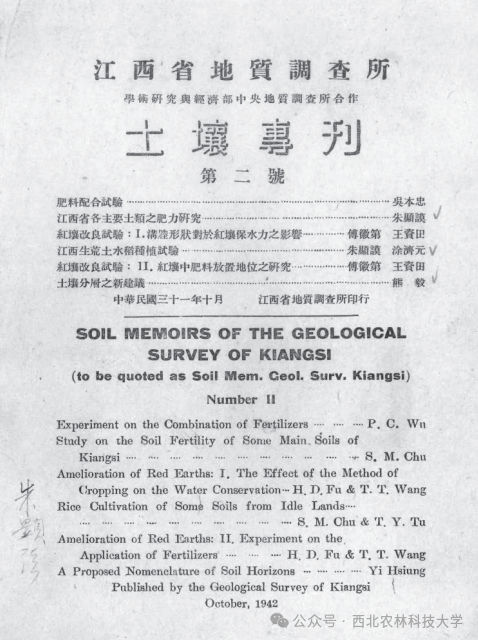 1942年,朱显谟在《土壤专刊》发表学术论文