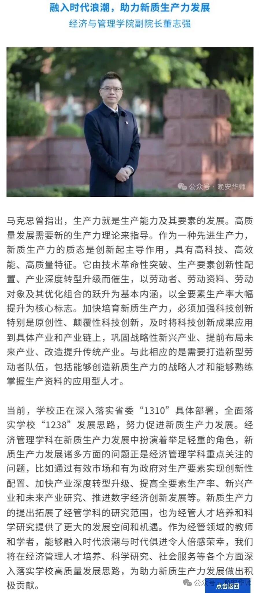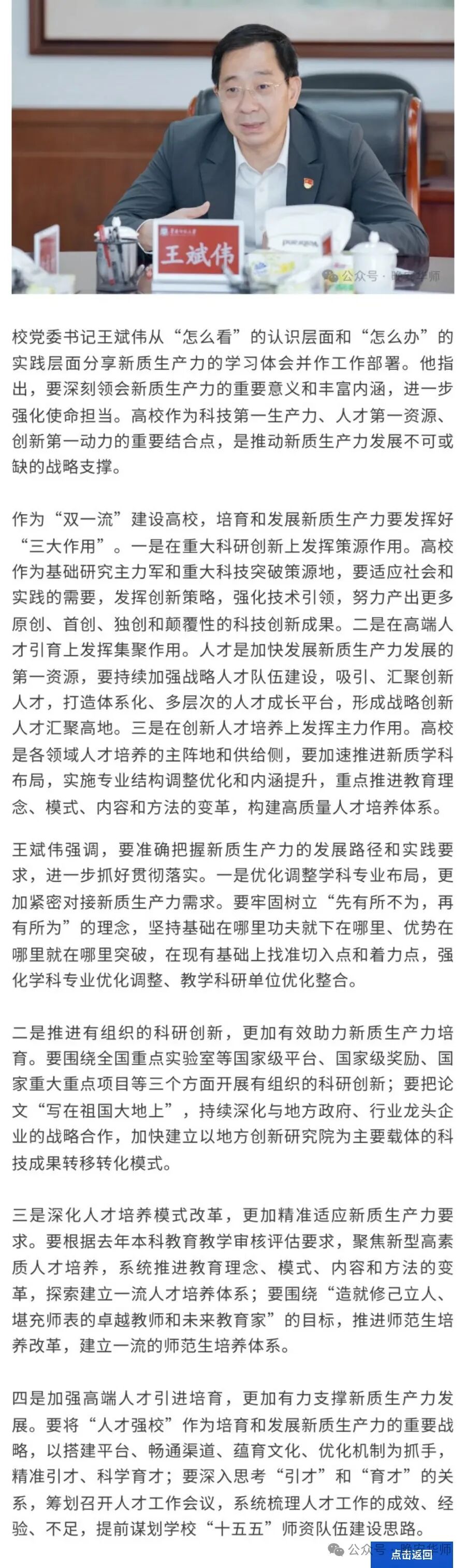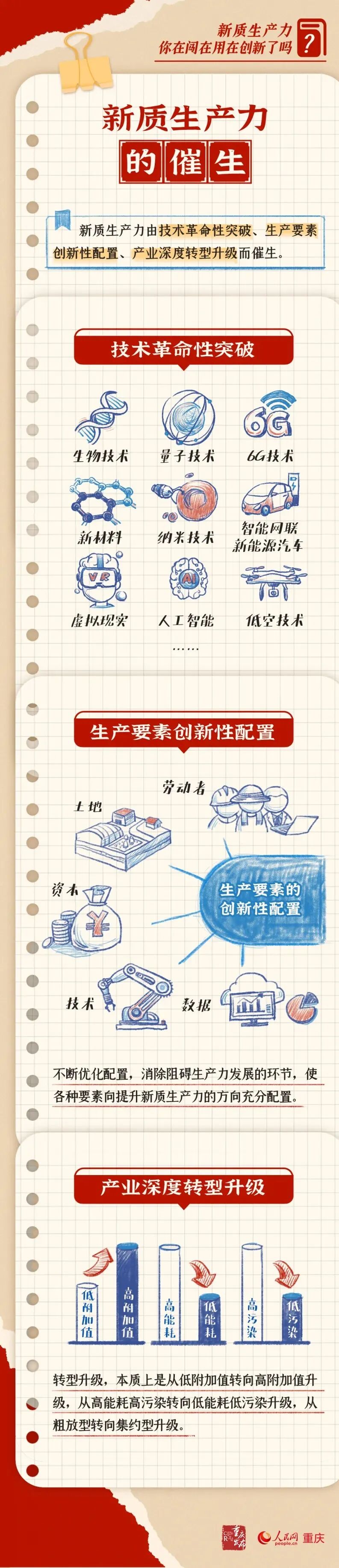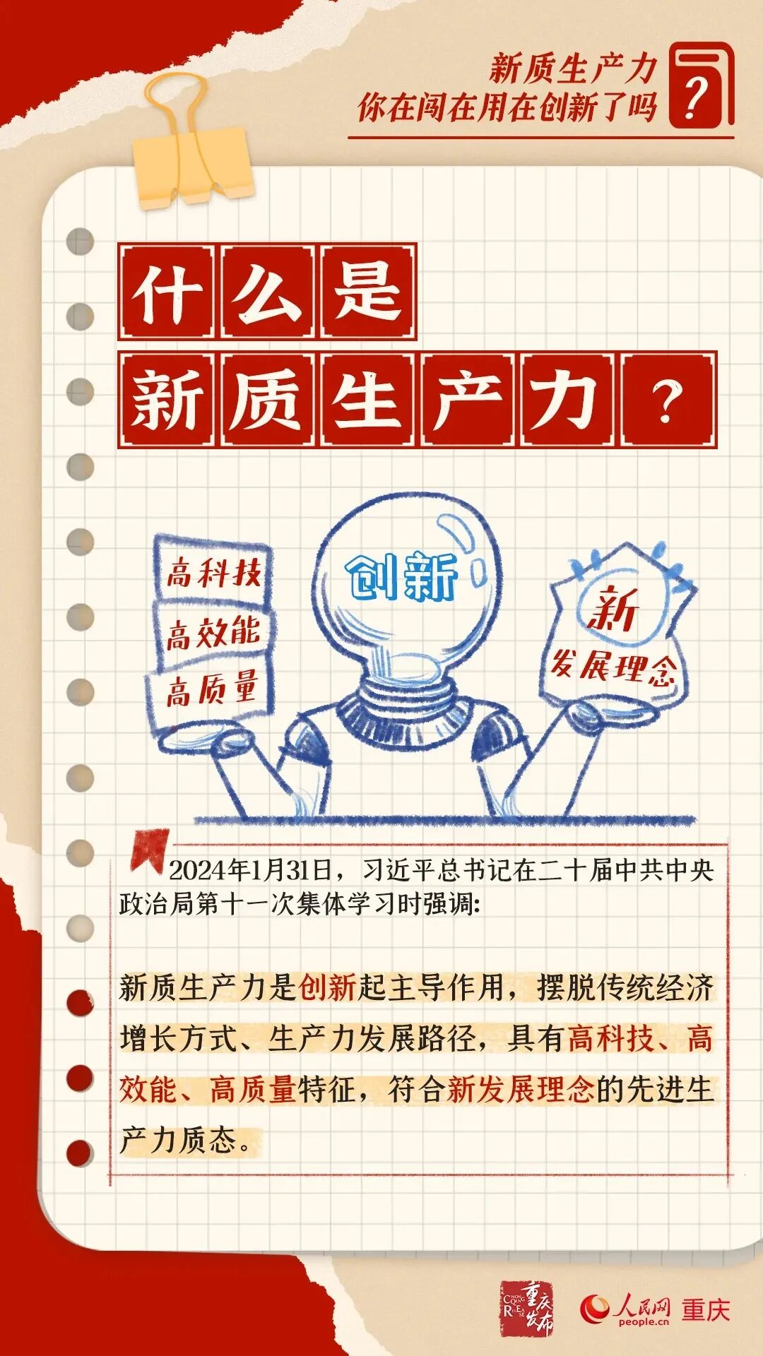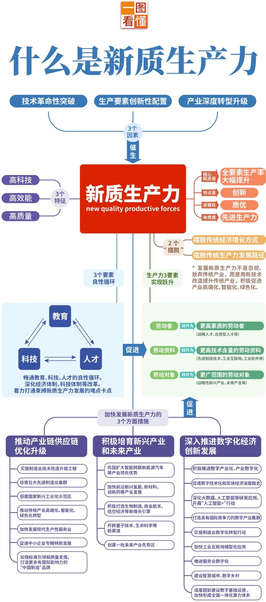 去年7月,习近平总书记在四川考察期间,首次提出“新质生产力”一词,此后又在多个重要场合作了深入论述。从首次提出“新质生产力”,到今年1月中央政治局第十一次集体学习时对新质生产力作出系统全面阐释,再到今年3月的全国两会上对发展新质生产力提出新要求,习近平总书记不断拓展和深化新质生产力的理论内涵和实践要求,为新时代全面把握新一轮科技革命和产业变革突破方向、推动生产力高质量发展,全面推进中国式现代化建设提供了根本遵循和行动指南。