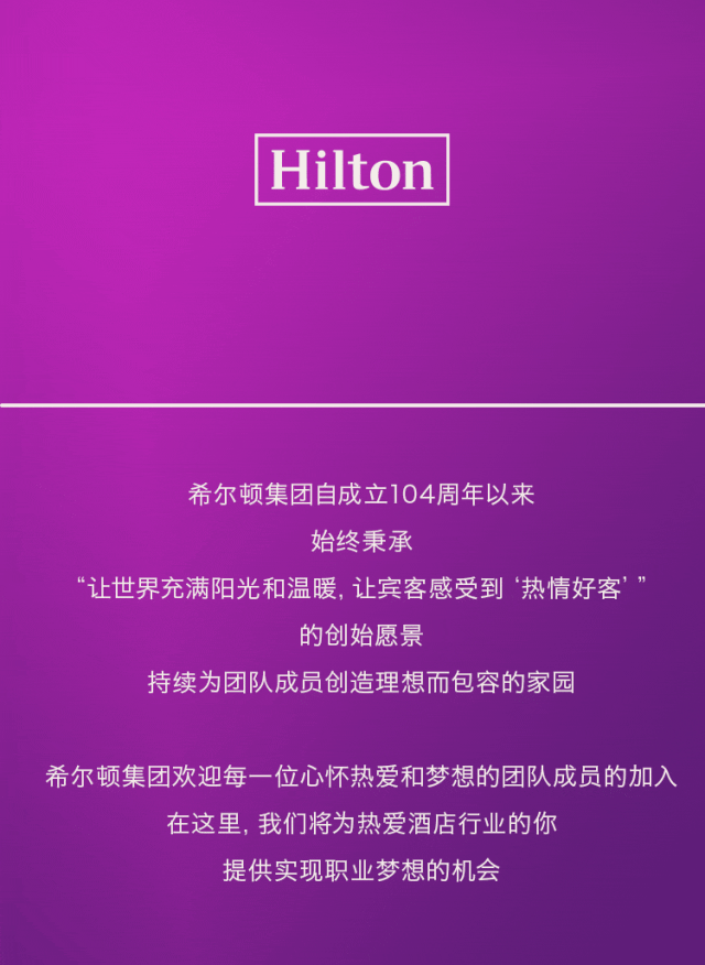文章内容来源于公众号:希尔顿集团资讯中心,点此可查看原文,内容版权归相关企业所有,本网站仅供交流学习。若涉及版权问题或存在侵权情况,请及时与我们联系,我们将第一时间进行删除处理。