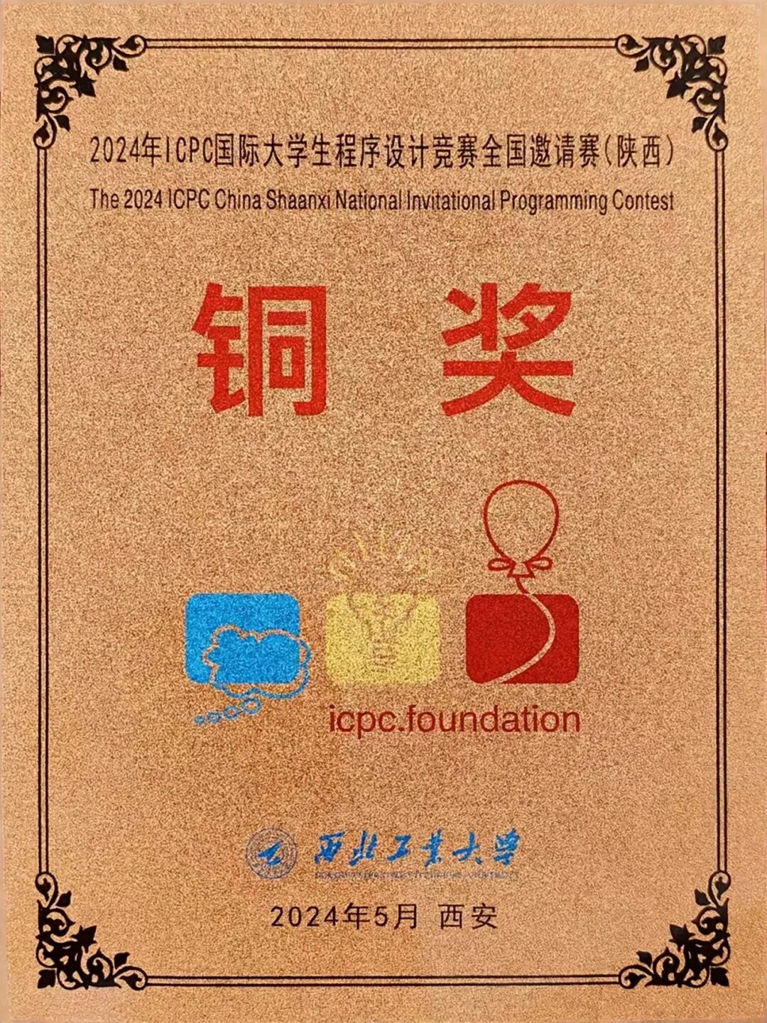 在这欢欣鼓舞的时刻,让我们再次祝贺我院选手在2024年ICPC国际大学生程序设计竞赛全国邀请赛(陕西)中荣获佳绩!