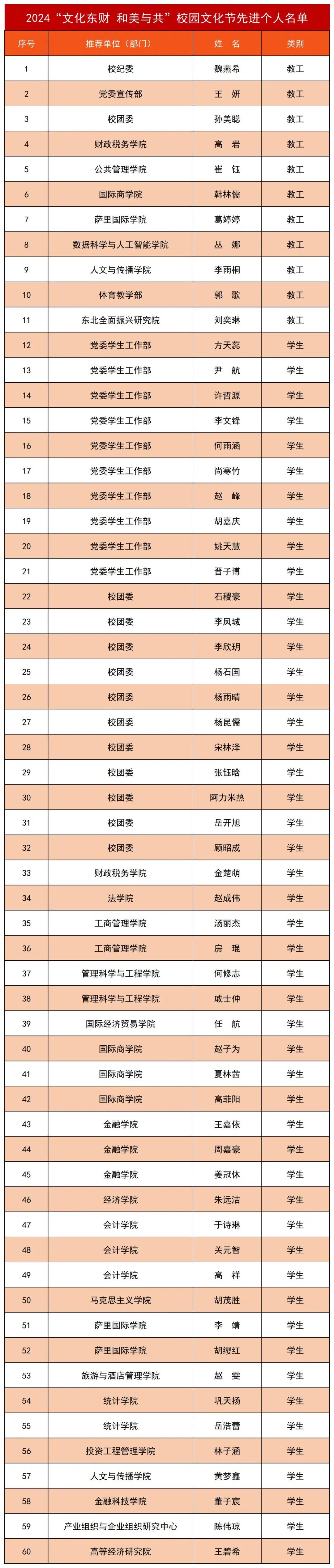 本届校园文化节中涌现出了一批优秀文化项目和先进个人,经推荐遴选、评委评审、学校党委审定,决定授予以下15项活动“优秀文化项目”称号,授予以下60名师生“先进个人”称号。