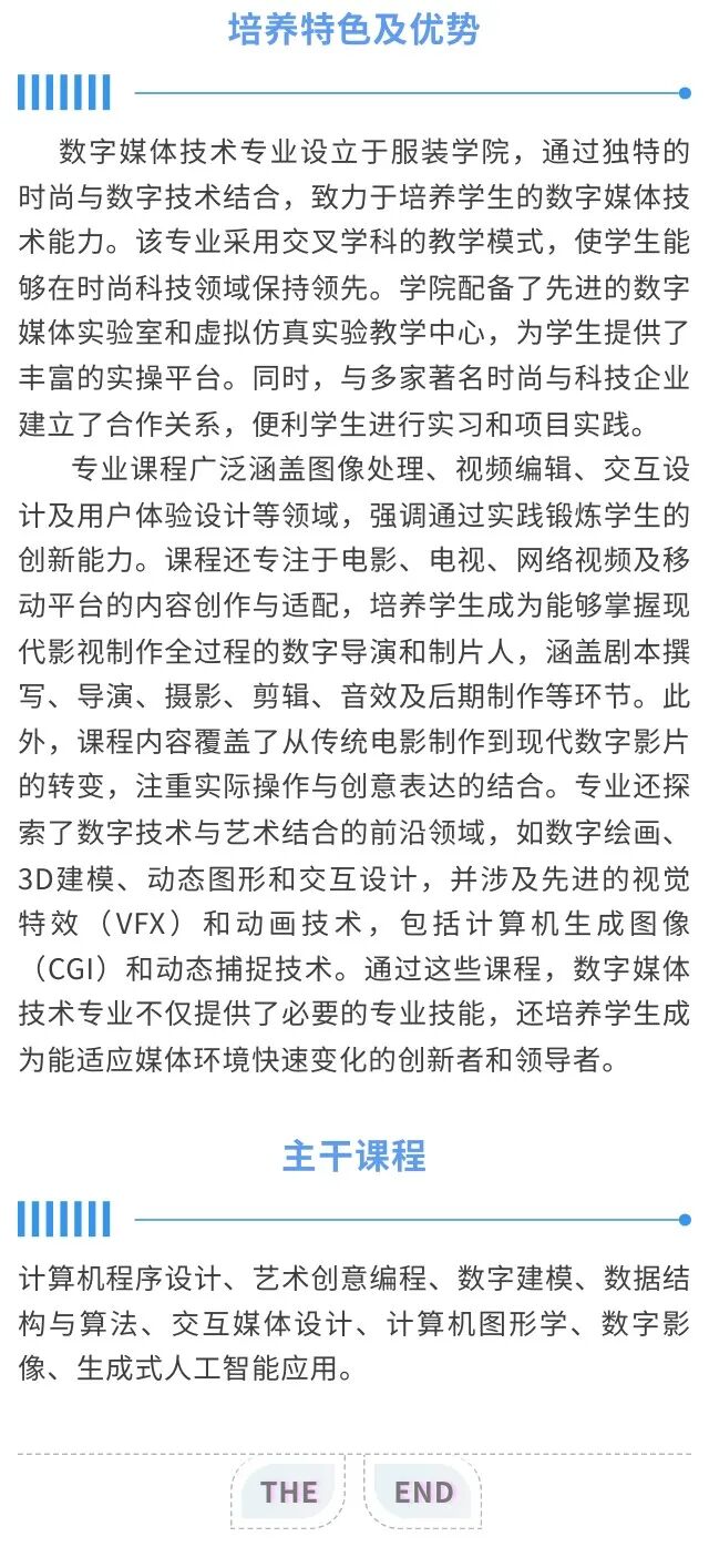 服装与服饰设计、服装设计与工程、表演、数字媒体技术专业