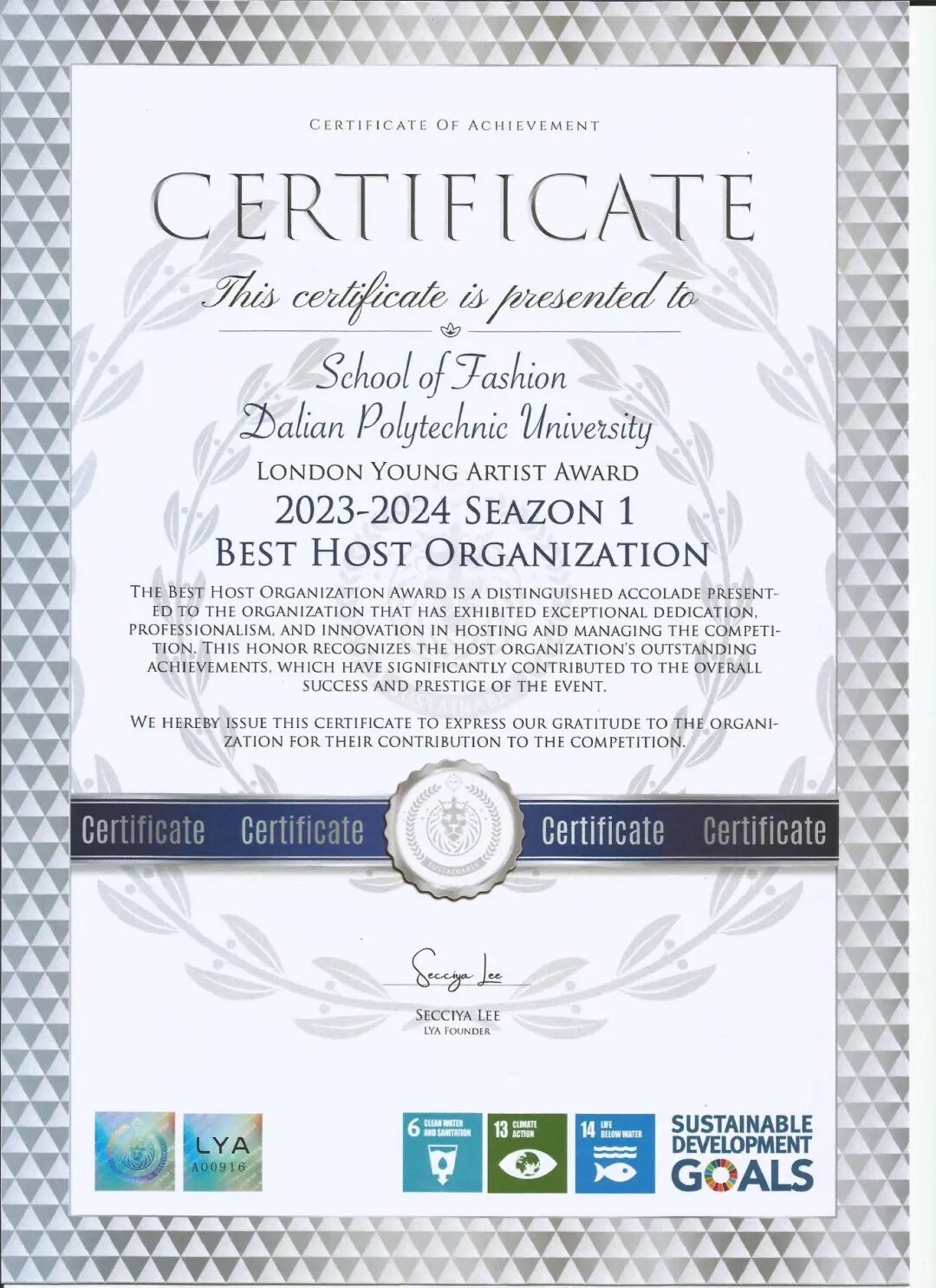 2023-2024年度伦敦国际青年艺术家大赛最佳组织奖