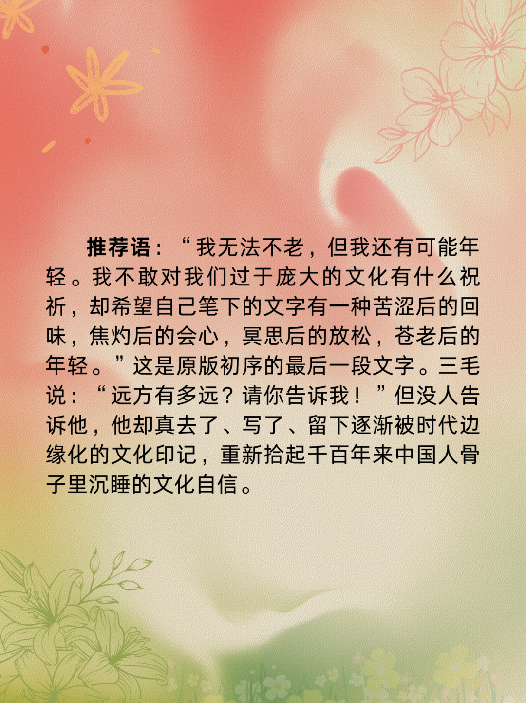 我们是碎片的集合。读书多了,我便能意识到,幸有历史千载——得觅知音。我不停地看书,看文学历史小说传记,不求甚解、每有会意便欣然忘食;不停地跋涉,历山川湖海世事洞明,直入白云深处,浩气展虹霓。只恐花深里,红露湿人衣。但像罗翔老师所说,阅读具有一种悖论性,我们因为无知而阅读,而我们越阅读,越承认自己是无知的。一本书就像一把利斧劈开我们冰封的内心。你准备好了吗?跟人类伟大的灵魂对话,用他的利斧劈开你那冰冷、傲慢、自恋与可怜的内心。大学之道,在止于至善。面壁十年图破壁,难酬蹈海亦英雄。