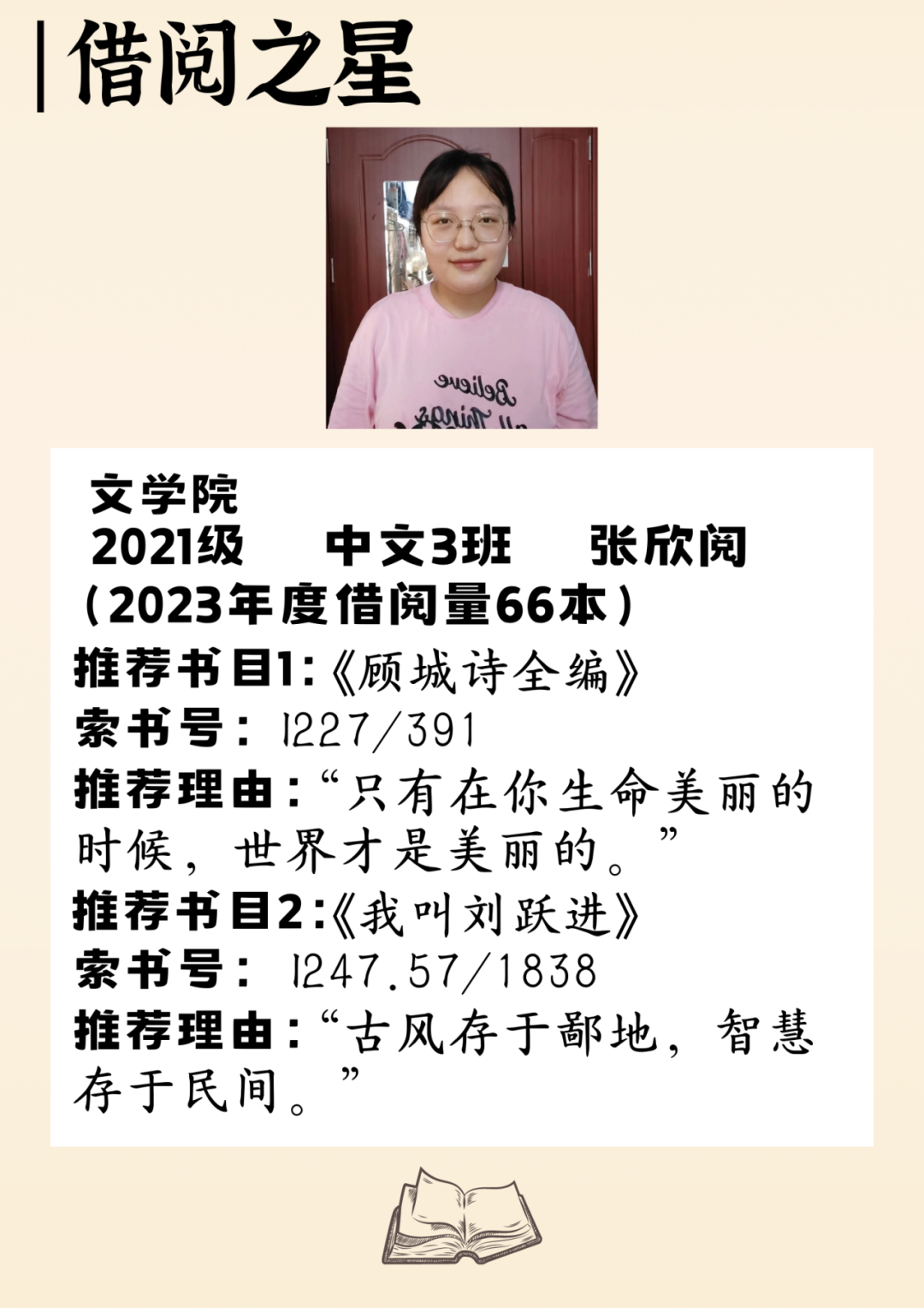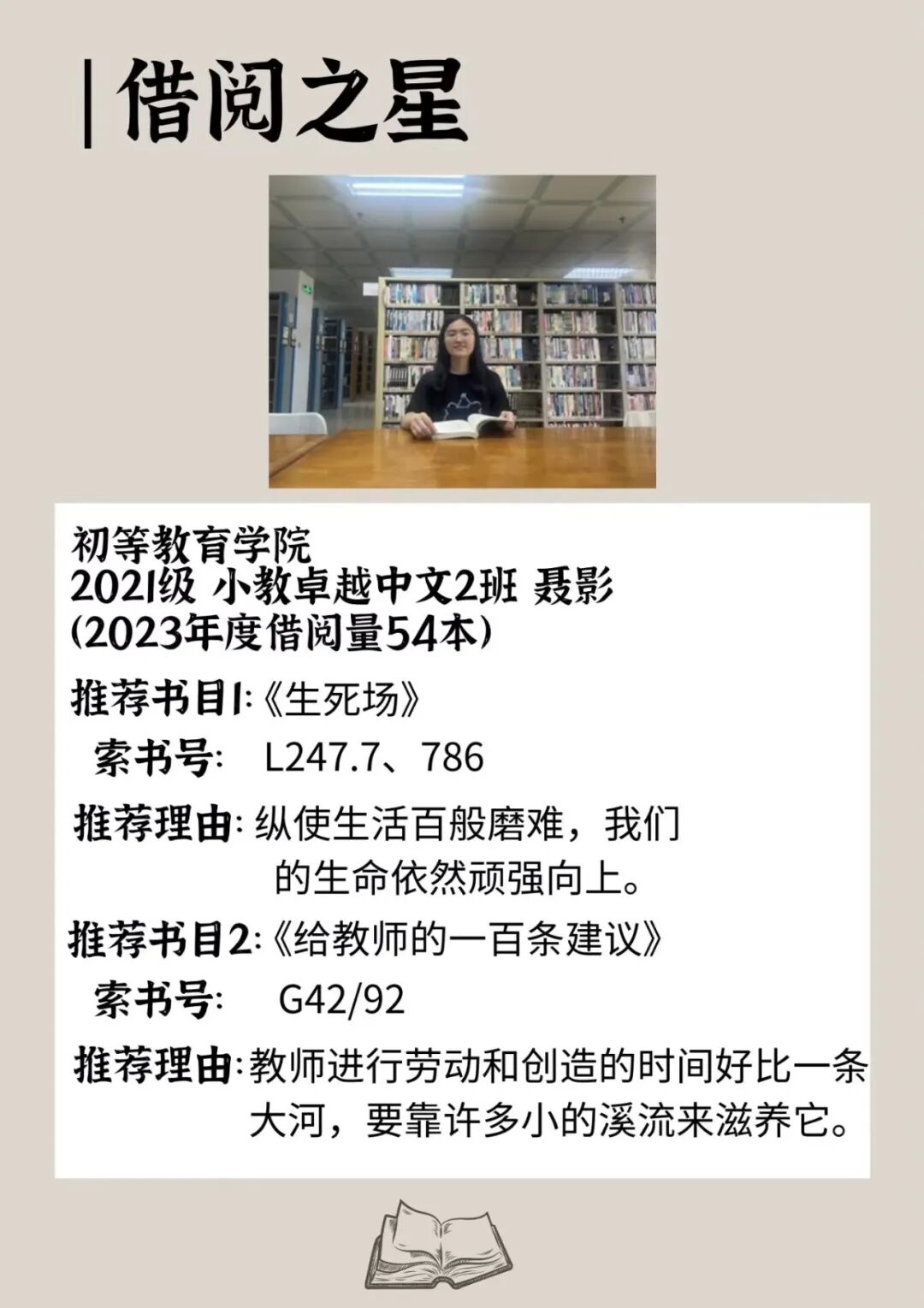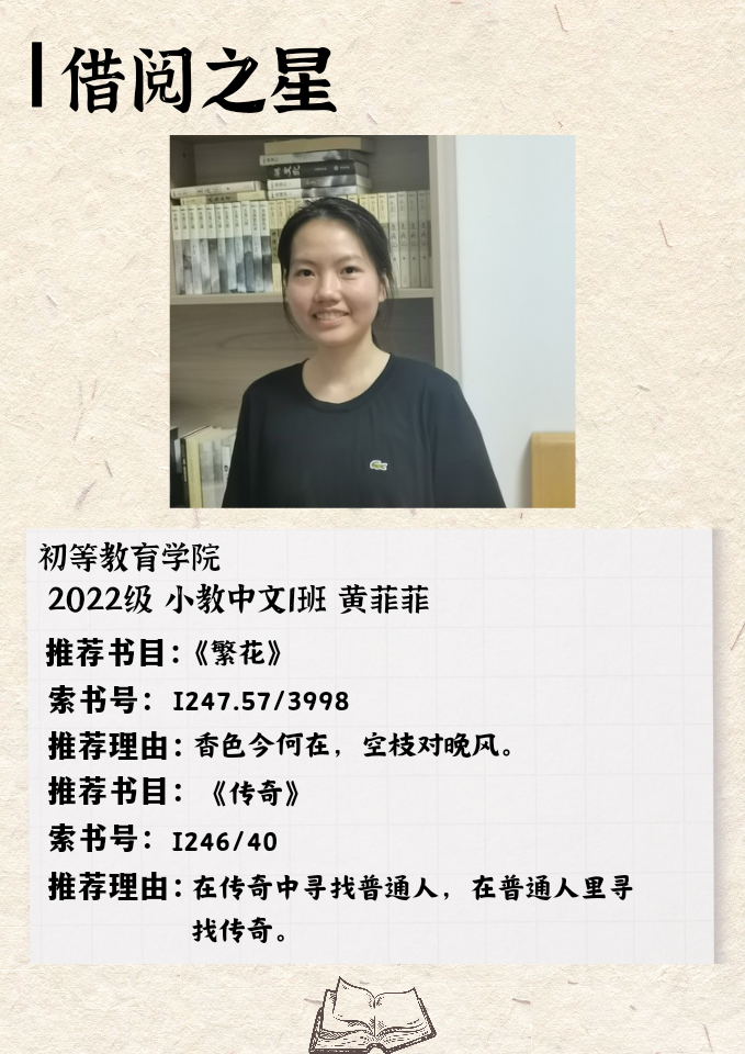 海南师范大学图书馆2023年度十位借阅之星