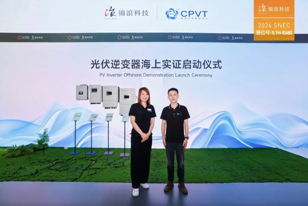 在锦浪展台,还成功举办了由国家光伏质检中心与中集集光共同组建的海上光伏实证基地揭牌启动仪式,该实证项目的阶段性成功,标志着该项目应用的锦浪30kW逆变器的抗腐蚀、震动及抗老化能力得到行业认证。