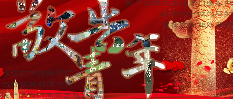 以学校的标志性建筑为背景