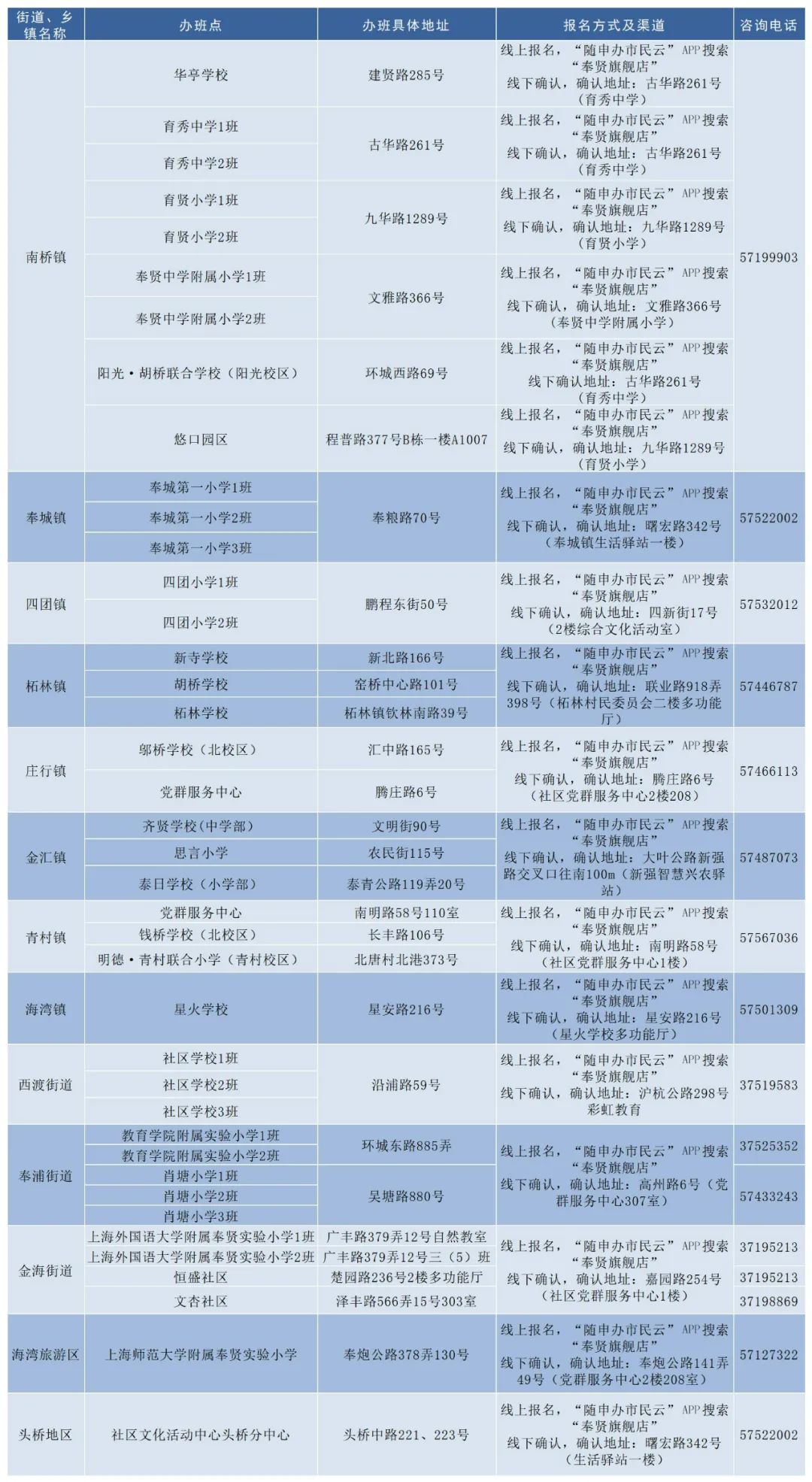 2.致电各街道、乡镇咨询热线:具体详见各街道、乡镇的招生简章。