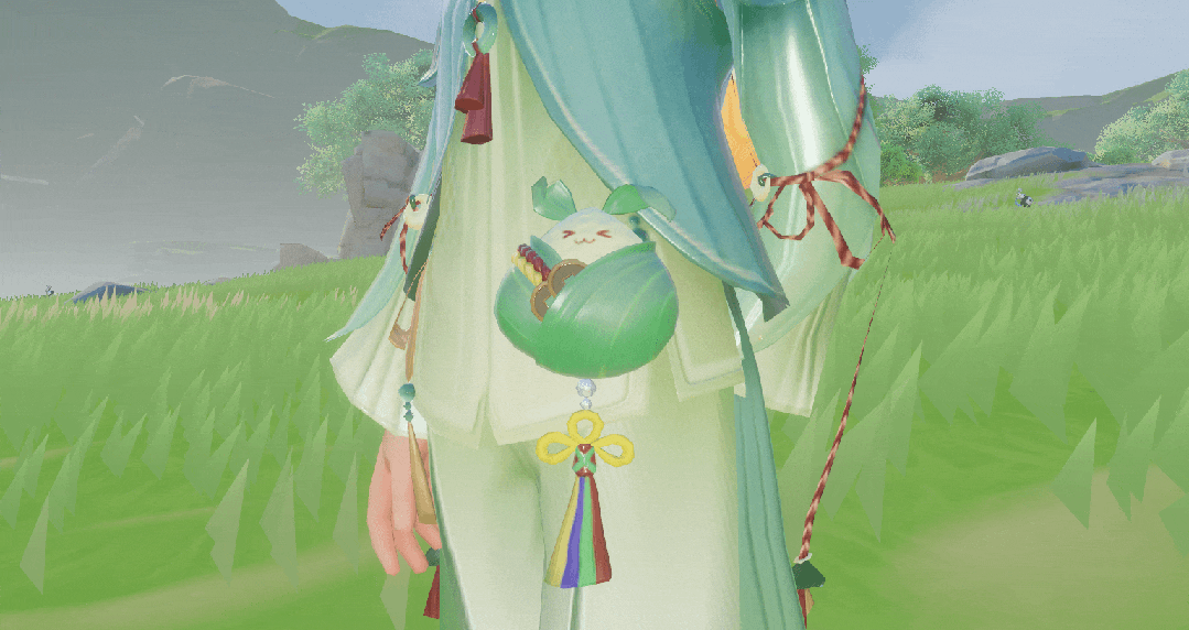腰部挂件【小香囊】外形犹如一个粽子,可爱萌动的小表情引人注意,头上是粽叶做成的耳朵,五色丝线与铜钱绑在身上,下方一个三耳结寓意吉祥如意,为端午增添了几分童真味道。