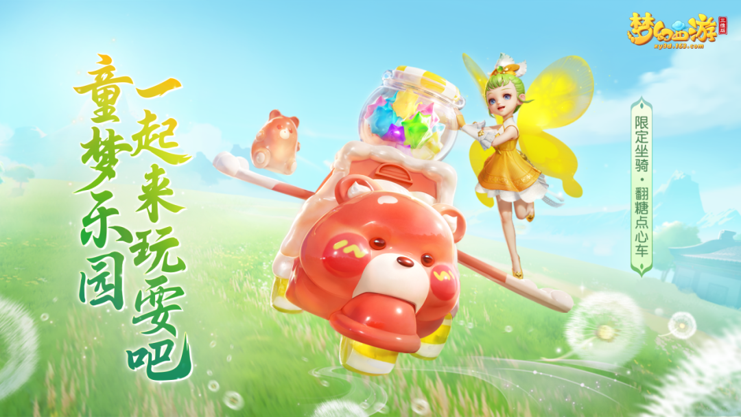 全新限定双人坐骑【翻糖点心车】激萌上线,可爱小熊带来七彩糖果,一秒带你重返童年!糖果一吃,甜过蜜枣,各位小可爱快和姐姐一同乘坐全新坐骑,同游童梦乐园吧!