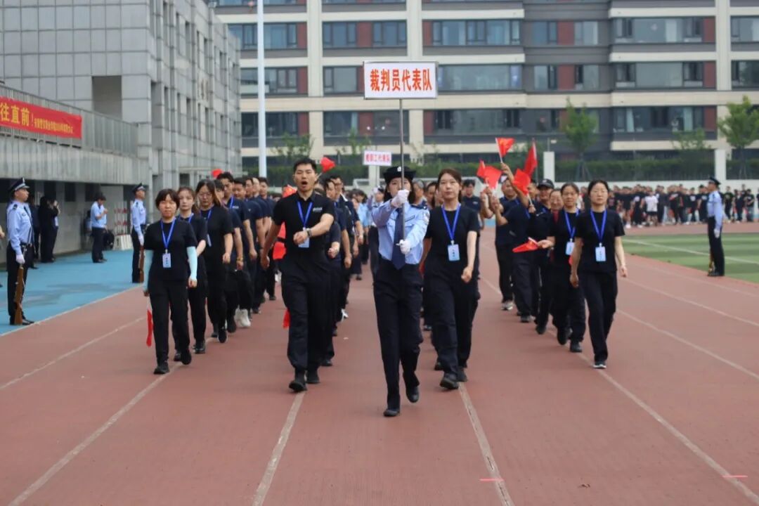 操申斌在开幕上致辞。他指出,本次运动会的召开是对学院体育工作和素质强警成果的检验,是对广大师生员工团队精神、顽强意志的考验,是全院师生精神风貌的全面展示。同时,他提出三点希望,一是无体育,不教育。希望在本届运动会上见证学院广大师生顽强拼搏、突破自我的瞬间,讲述挑战极限、永不言弃的青春故事。二是无运动,不青春。希望同学们放下手机、走出宿舍、走向操场,体验运动的美好,让青春飞扬。三是无警彩,不飞扬。学院作为司法警察类院校,法治人才教育培训基地,希望同学们保持过硬的体能素质,关键时候能冲得上、拉得出、打得赢。