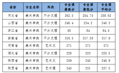 我校美术学类专业2022年专业课录取情况