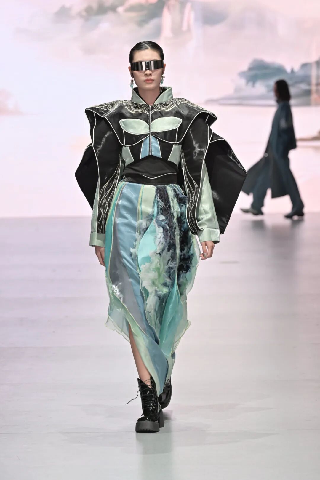 “智·悦”不仅是一种创意主题,更是一种时尚态度,一种对美好生活的追求和探索。本届服装与服饰设计专业的设计师们从数智时尚、文化传承及产教融合三个板块出发,以时尚为载体,传承中华五千年的文明;以创意为纽带,连接历史与未来;以环保为理念,探索人类可持续的方向;以数智为契机,表达对美好生活的本真体悟。在“智悦”的世界里,时尚不再是追逐,而是一种生活的表达,一种个性的展现;时尚设计不再局限于表面的装饰,它渗透到生活的每一个角落,与数智技术完美融合,每一件作品都充满艺术的气息、勾勒美好生活的蓝图。