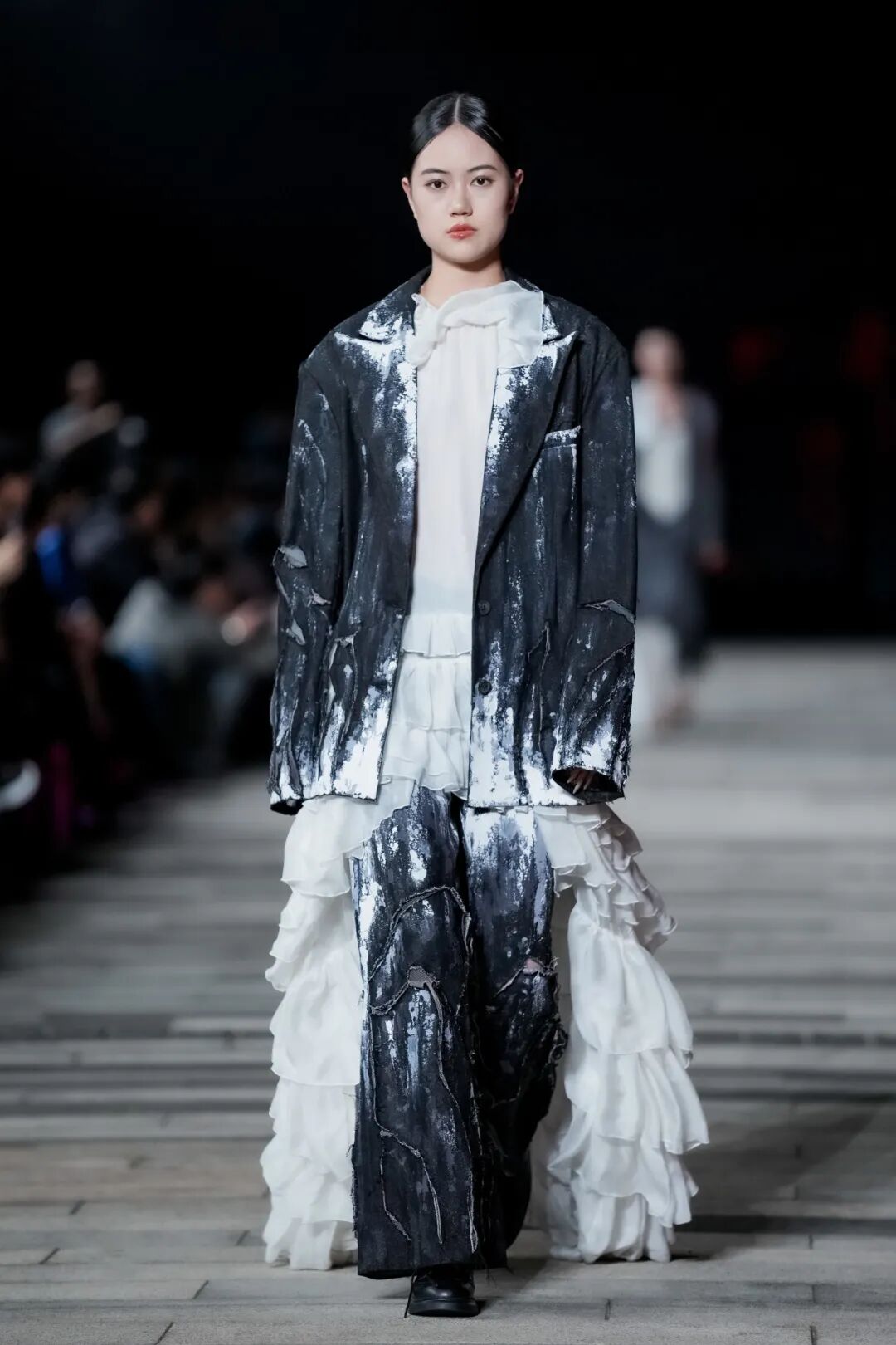 颂时·溯回之境作为2024届服装与服饰设计(中美项目)专业主题毕业秀的核心环节,更是吸引了众多观众的目光。119名毕业生带来了东方既白、解离守恒、循心而行、暗域序曲、校服新韵5个系列,共计132套精心设计的毕业作品。各种设计风格相辉映,彼此灵感碰撞,让人眼前一亮,赞叹不已。