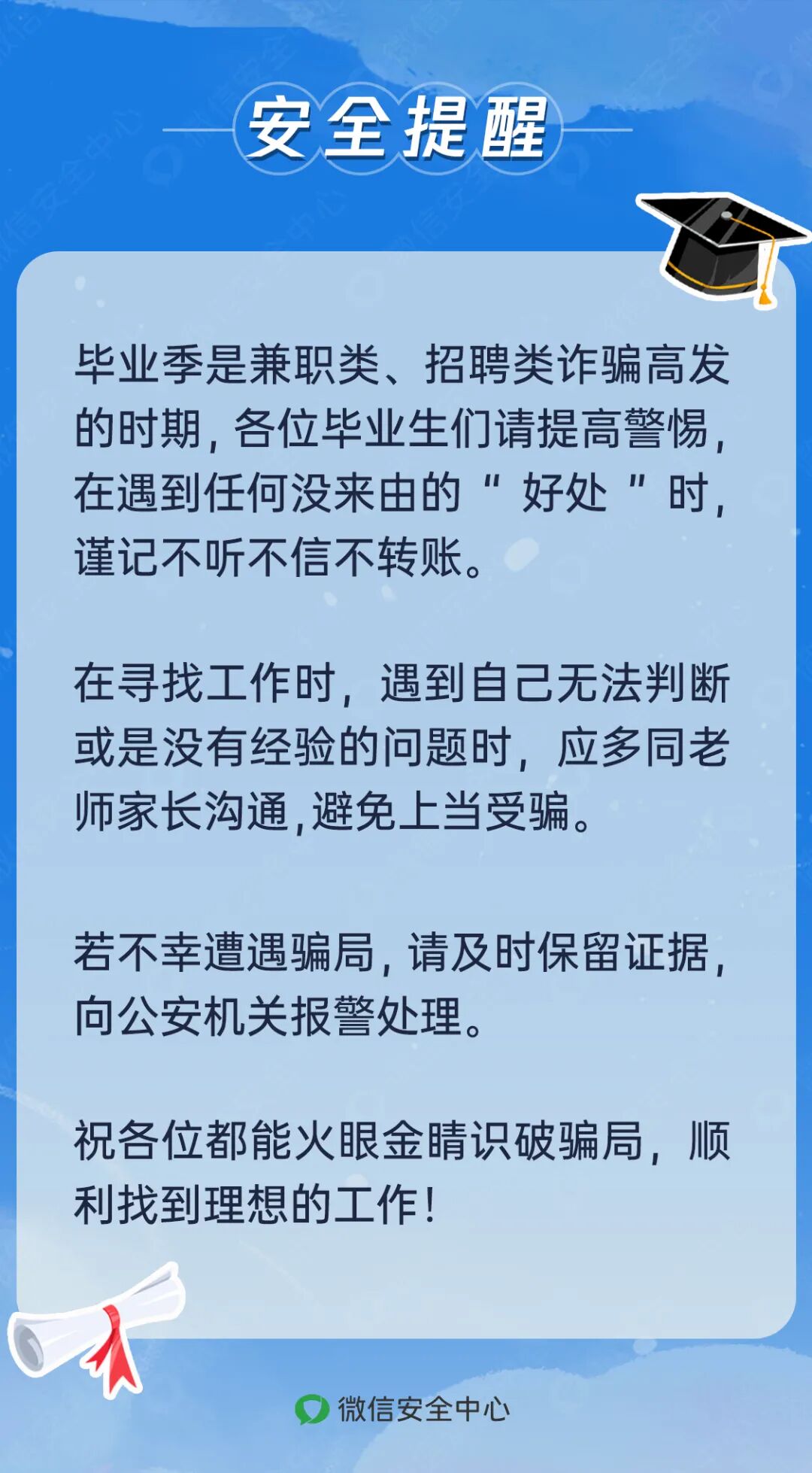 步入社会的你们,可能是各自领域中的“镇山虎”“领头羊”,但也有可能是骗子眼里的“猎物”。