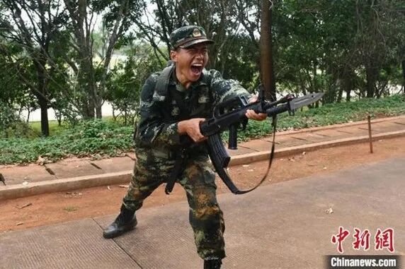海南岛位于我国南陲,终年四季如夏,最高温度直逼50度的日子也是司空见惯。“还记得新兵连刚踏上训练场时,那时正是烈日炎炎的时候,训练场上的水泥地就像雪糕一样在空气中融化,我们就站在太阳下面,站了数个小时的军姿,全身湿透,感觉自己就像个盲人,因为眼睛始终被源源不断的汗水冲刷,就像眼前挂了两道瀑布一样,还好内心的意志如铁板刻的字一样是冲刷不了的。”杨亮亮回忆道。