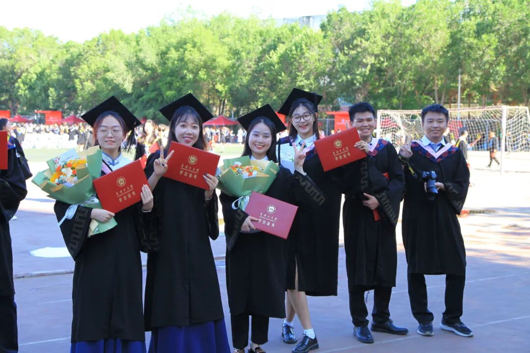 在随后举行的学位授予仪式上,校领导、学院领导及学位委员会委员为毕业生们拨穗、颁发学位证书并合影留念。