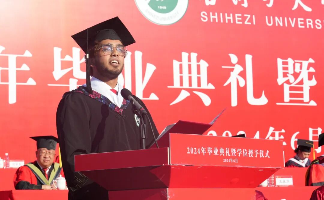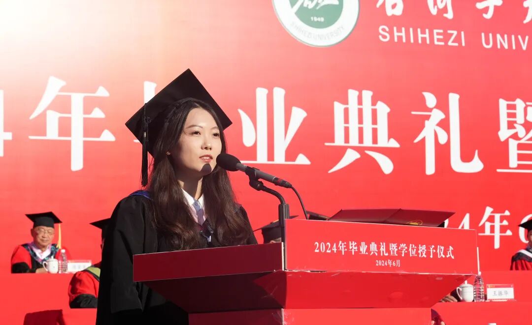 师范学院学前教育专业本科生雷婉露、马克思主义学院马克思主义理论专业硕士研究生张亚男、医学院临床医学专业留学生Farhan(法尔汉)作为毕业生代表先后发言,回顾了自己在石大的青春时光,表达了对学校的不舍,对老师、同学的感激以及对未来的美好憧憬。