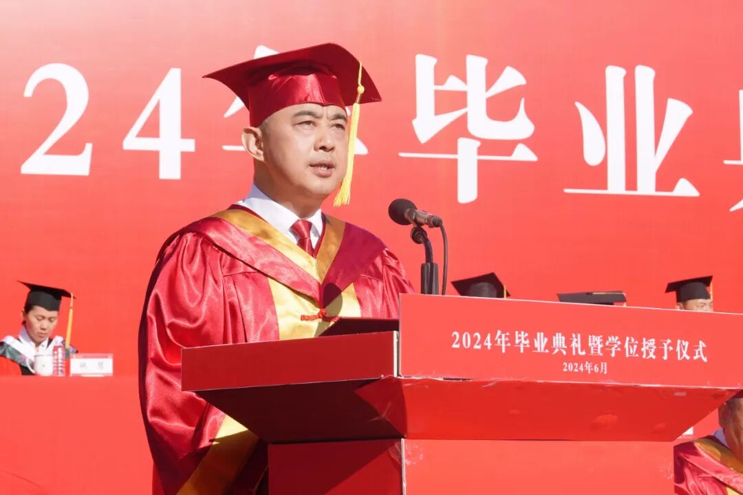 骊歌轻响,毕业已至。6月20日上午,石河子大学2024年毕业典礼暨学位授予仪式在学校北区操场举行。中国工程院院士陈学庚,中国工程院院士尹飞虎,石河子大学党委书记徐善东,新疆政法学院党委常委、副校长马召伟,石河子大学校领导牛新民、叶含春、李孝光、李鲁华、杨兴全、吴向未、张小宾、李景彬,校学术委员会委员、各职能部门领导以及各学院领导,教师代表,校友代表,毕业生家长代表和2024届毕业生参加典礼。毕业典礼由石河子大学党委副书记、副校长李兆敏主持。