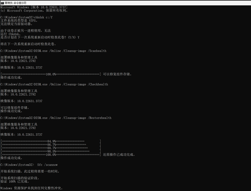 e.最后检查系统并修复: